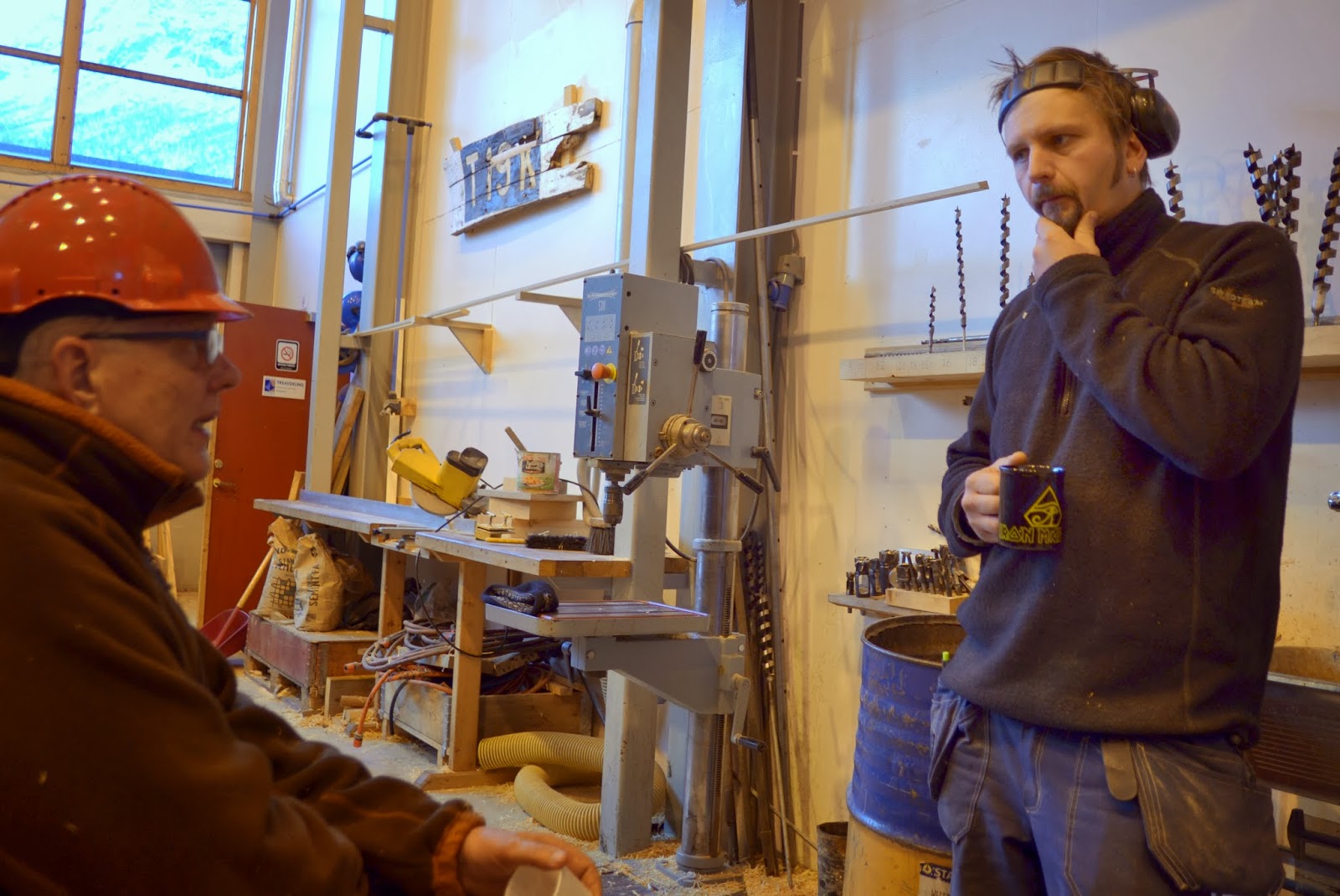 Ole Magnus Ellefsen og Endre diskuterer prosjektfremdrift og ulike løsninger.