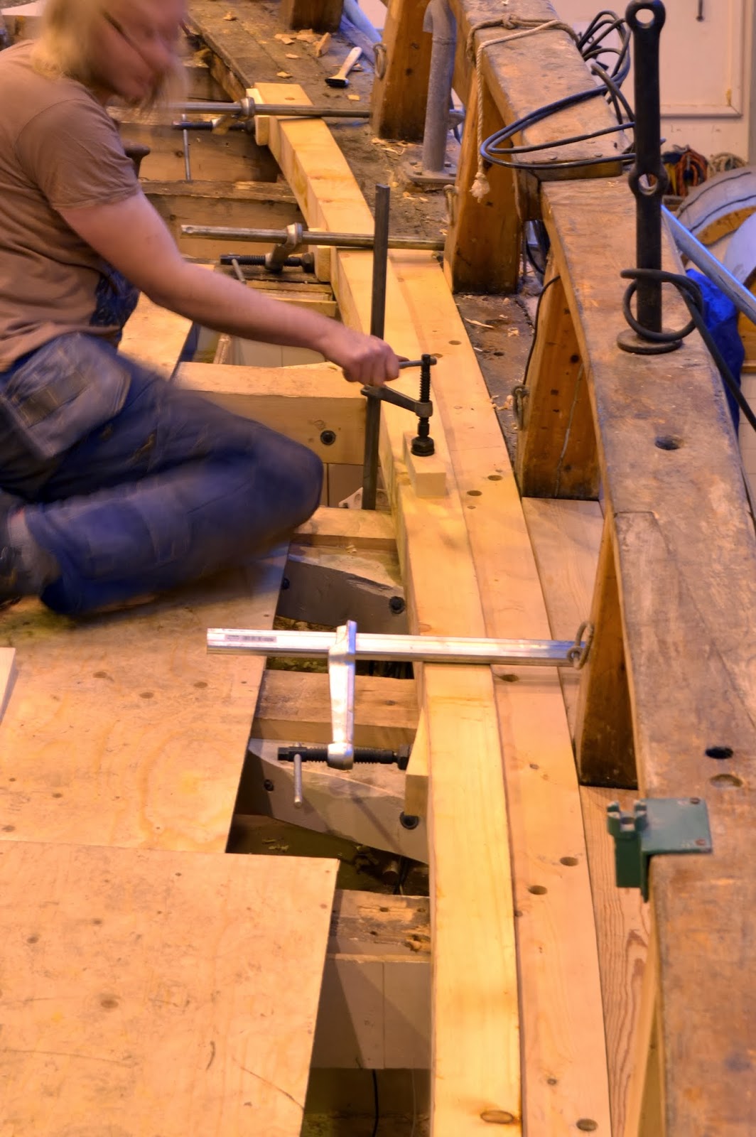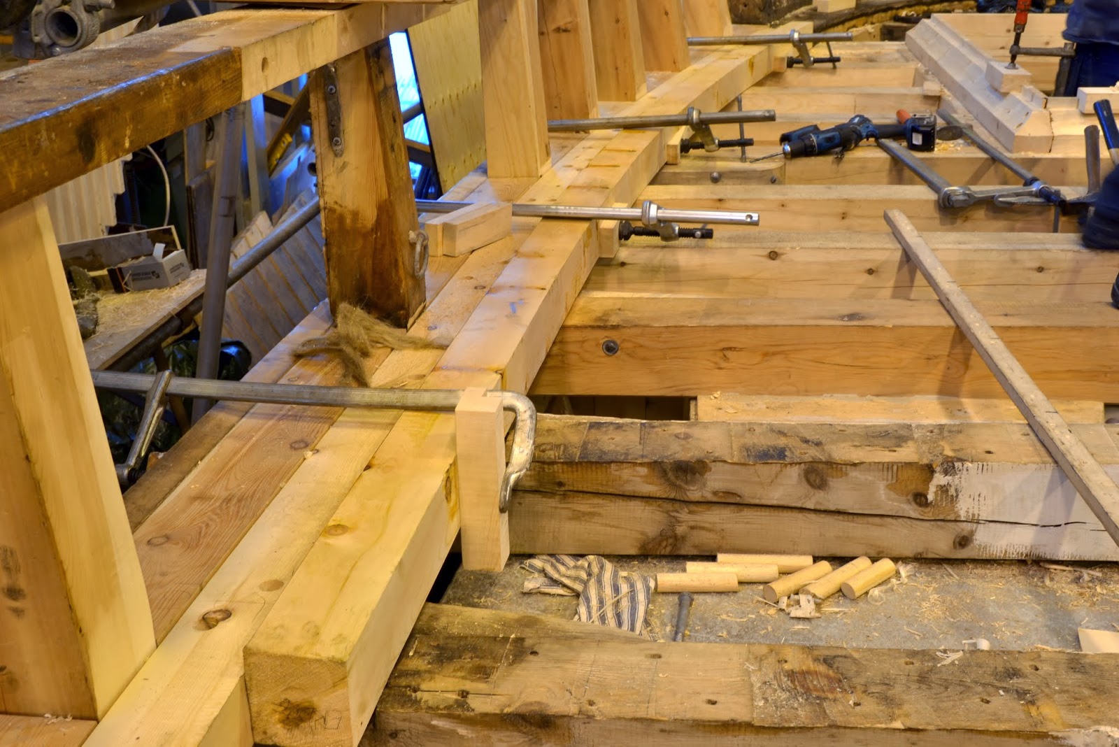 Så tvinges den fast til resten av skandekket, og ned mot bjelkelaget.