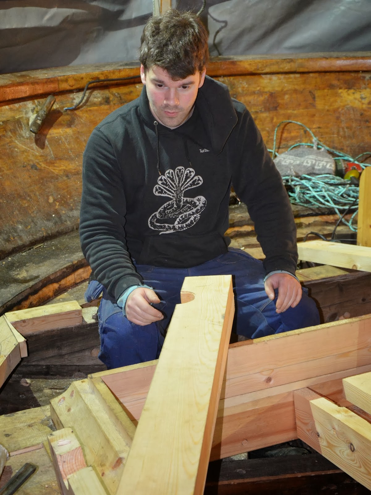 Lærling Ægir fikk ansvar for legging av akterdekket.
