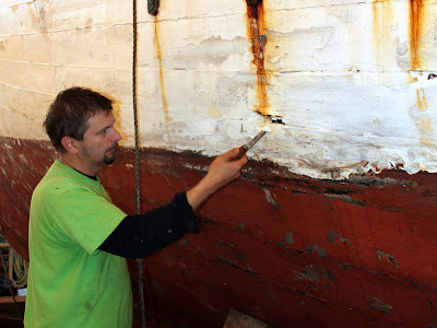 Her er matene løftet av, og klyveren trukket inn, og Folkvang klar for å settes inn i slipphallen.