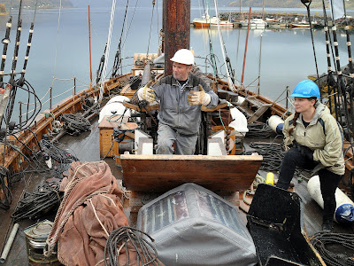 Det var nå bestemt at Folkvang skulle slippsettes for utbedring av råteskadene som ble avdekket ved forrige slippsett. Båten skulle nå inn i slipphallen for omfattende arbeid, og det var nødvendig å rigge den ned. Folkvang er godt utrustet med navigasjons- og kommunikasjonsutstyr, og for å berge mest mulig av kabler og slikt ble det besluttet å demontere utstyret ved hjelp av lift.