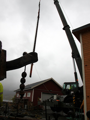 Vi fikk atter en gang god hjelp fra forsvaret med å løfte mastene av båten.