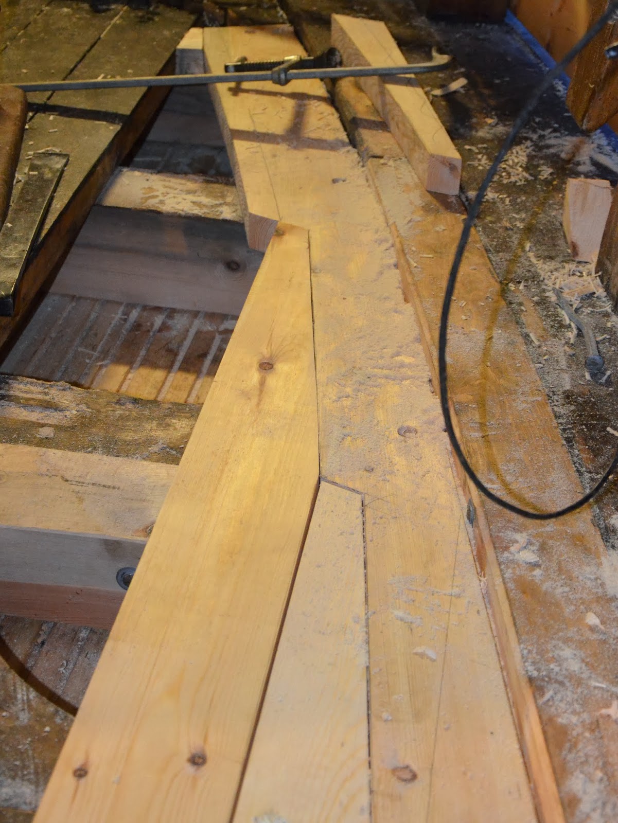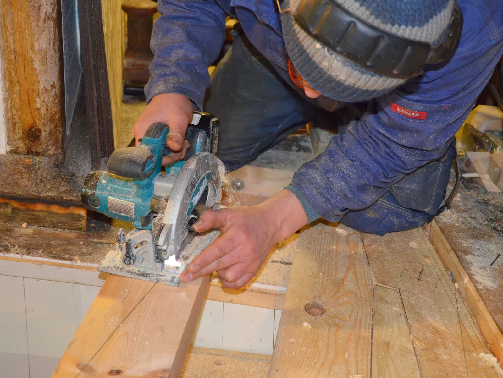 Endre skjærer til enden på dekksplanken som felles inn i hakaplanken.